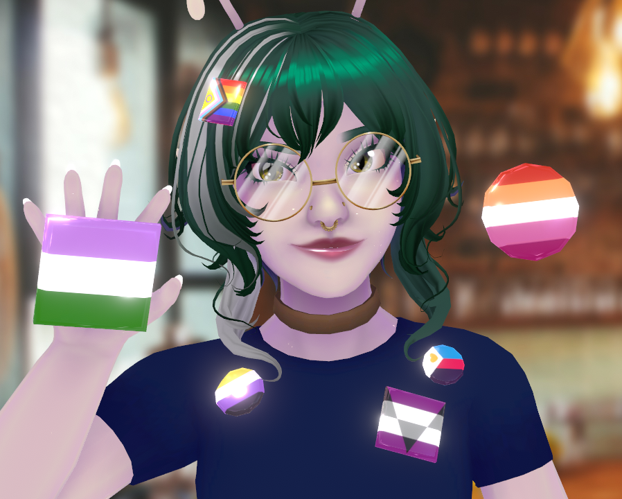 Low-poly, 3D round and square buttons in an assortment of different Pride colors! These are for use with VNyan (suvidriel.itch.io/vnyan), Warudo (warudo.app), and VRChat (hello.vrchat.com/ ).